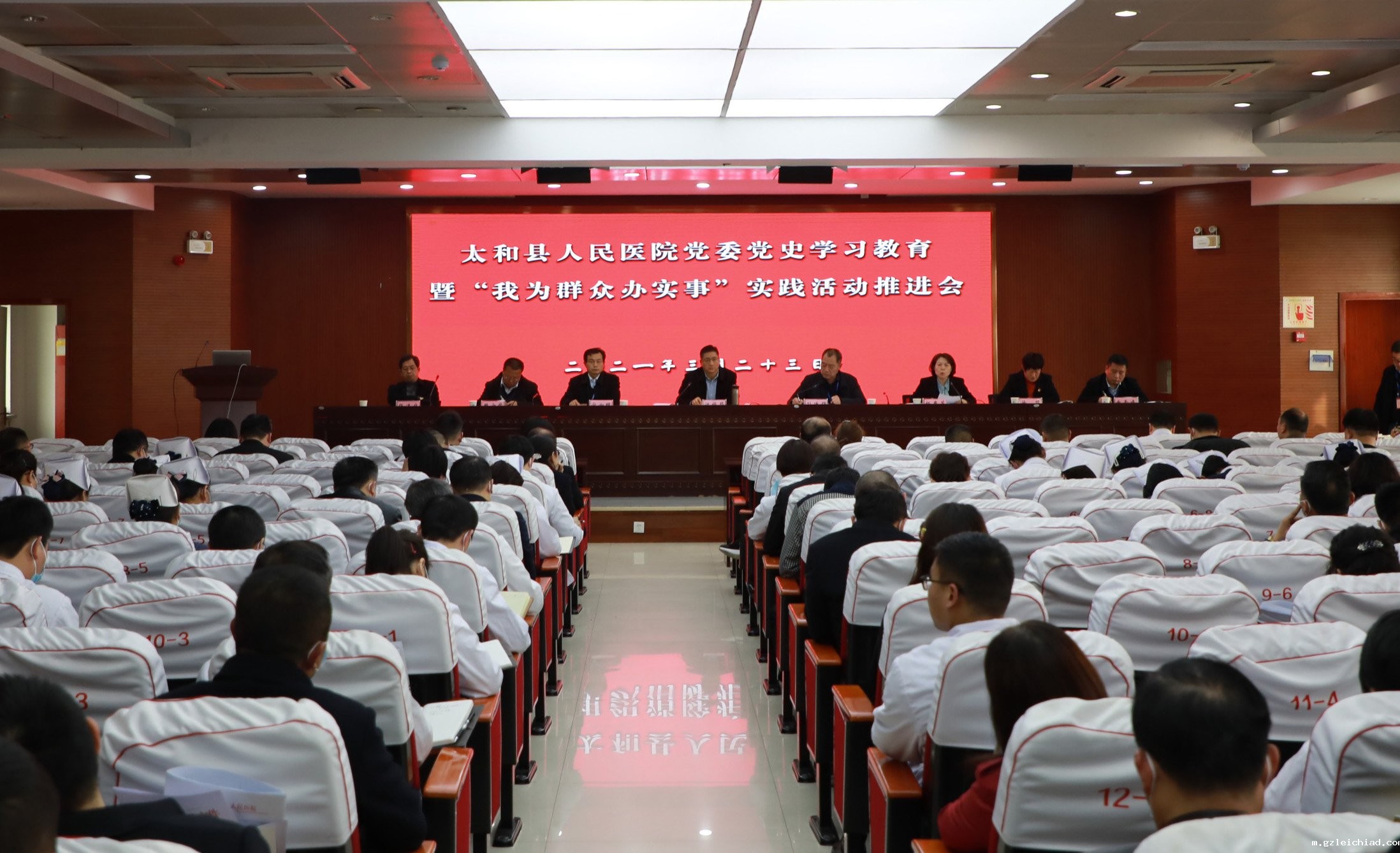 会议通报太和县委党史学习教育领导小组办公室巡回指导组督查反馈意见,分解“我为群众办实事”实践活动暨“让患者更顺心、让职工更顺手”主题活动反馈意见建议整改任务,听取信息科、医学装备科整改落实表态发言。