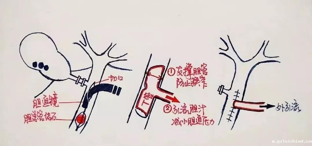 胆总管结石有另一种治疗方法,经胃十二指肠镜找到胆管进入肠道的开口,逆行插管,将胆管内的结石取出。