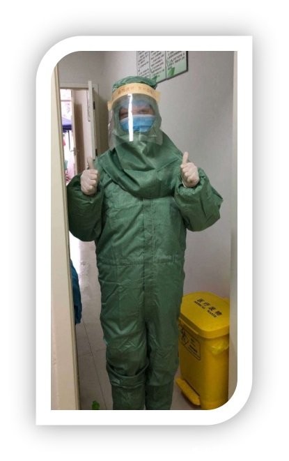2月3日正式来到发热门诊值班,张群护士长再三嘱咐我们一定要做好防护措施,必须人人过关,通过考核后护士长把我带到我奋战的战地。虽然穿着防护服, 带着护目镜,口罩,面屏,我还是一眼认出来给我交班的同志,这不是我们以前的张翠兰护士长吗,她应该就快退休了吧?她都在这里了我们还有什么理由退缩呢!