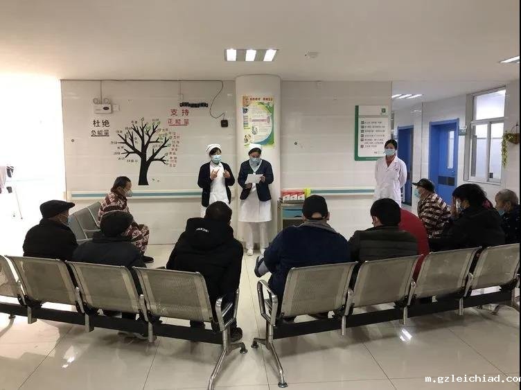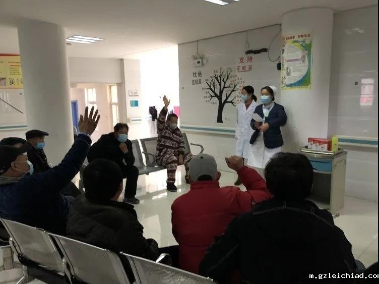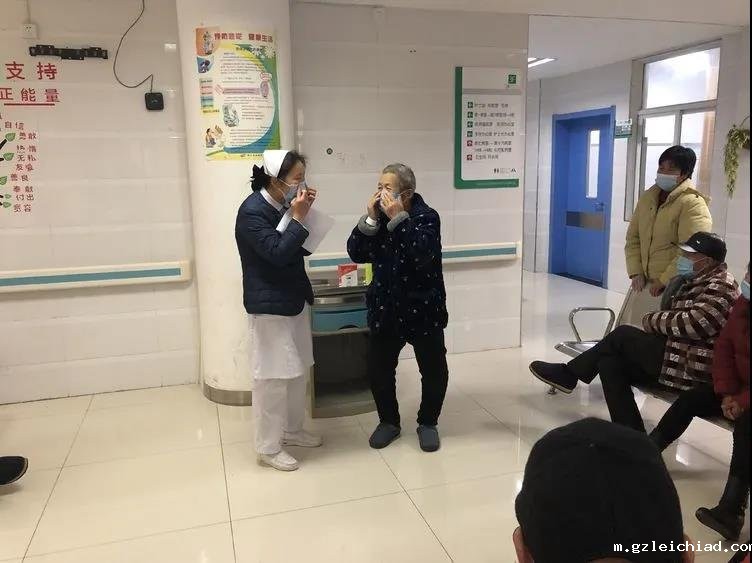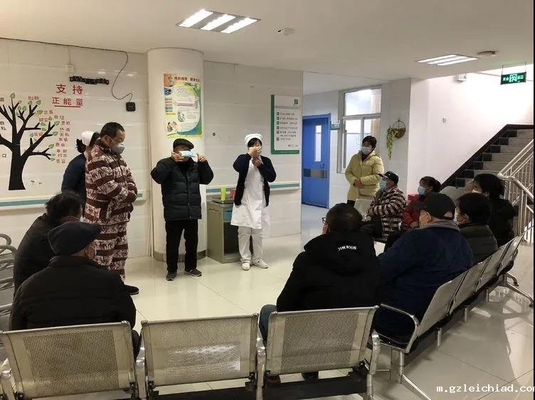 患者及家属跟随医护人员学习正确的洗手方式,大家搓搓手,揉揉拇指,乐在其中。护士长示范如何正确佩戴口罩,大家认真学习,反复练习。