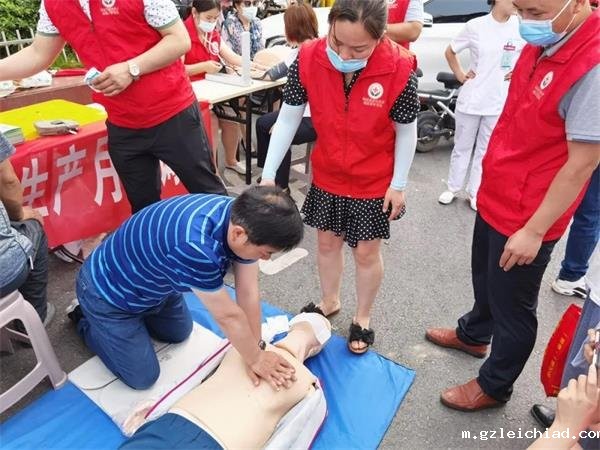 来往人群纷纷前来咨询,志愿者们详细的为他们讲解操作要领,耐心纠正错误动作,同时宣教安全生产的重要性。大家跟着志愿者们利用模拟假人学习急救操作,学习热情高涨,积极参与其中。