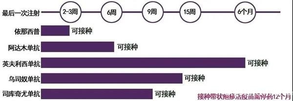 答:银屑病病情处于稳定消退期及使用生物制剂患者,一般只要接种部位(上臂三角肌)的皮肤无明显皮损,则可以正常接种疫苗。同时建议遵循先接种新冠疫苗再进行生物制剂治疗的原则,在接种新冠疫苗2周后再启动生物制剂治疗。如果已经在进行生物制剂治疗,建议在病情稳定期停药一段时间后再接种新冠疫苗,根据使用生物制剂的不同,停药时间也有所不同,具体见下图。