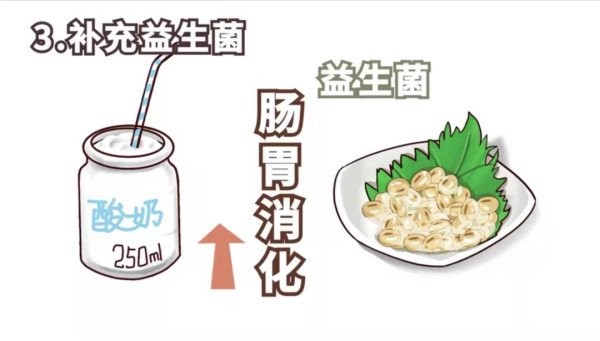 3.补充益生菌:如食用酸奶等富含益生菌可以促进肠胃消化。