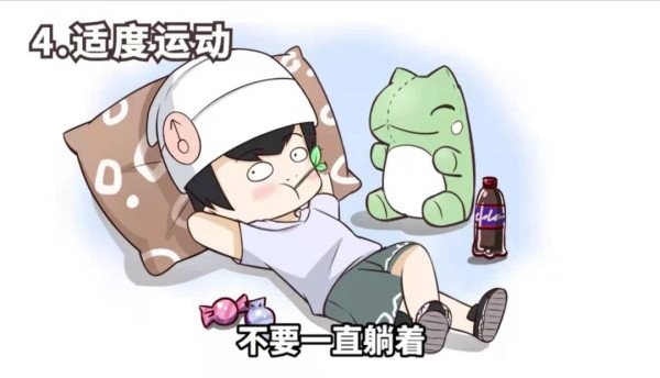 4.适度运动:避免长期卧床或久坐,住院期间不要一直躺着,身体允许的情况下,可根据条件做散步或者简单的运动可以促进排便。