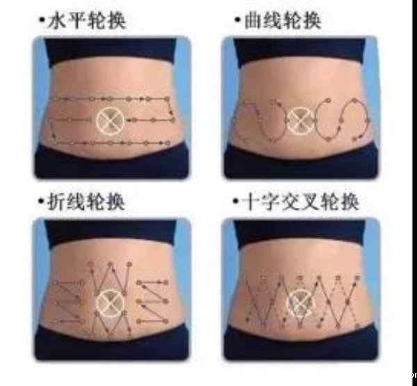 (腹部边界如下:耻骨联合以上约1cm,最低肋缘以下约1cm,脐周2.5cm以外的双侧腹;大腿前外侧上1/3;臀部外上侧;上臂外侧中1/3)