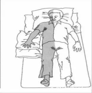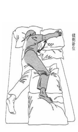 2.侧卧位。在健侧卧位时,患侧上臂应作肩前屈状,胸前放一枕头,把患侧上臂置于枕头上掌心向下,使肩胛骨处于前伸位。患侧卧位时,患侧上臂也应作前屈状,肘伸直,前臂旋后,掌心向上 。