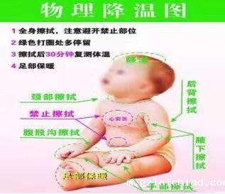 ①将湿毛巾敷于发热孩子的前额,2~3分钟换1 次。对于体弱或年幼的小孩,不宜用冰凉的毛巾,而应该用温湿的毛巾。