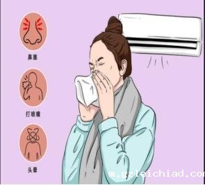 “空调病”因冷而起。低温环境会使“冷”感觉传至体温调节中枢,指令皮肤血管急剧收缩,血流不畅,汗腺停止分泌,使关节受损受冷导致关节痛;室内外温差大,忽冷忽热的环境下,人体本身平衡调节能力差,承受不了过大的温差。当体内平衡调节系统功能紊乱时就易感冒。“冷”感觉还可使交感神经兴奋,从而出现肠胃不适等诸多症状;长时间处于空气质量差的密封环境中容易出现头晕目眩。