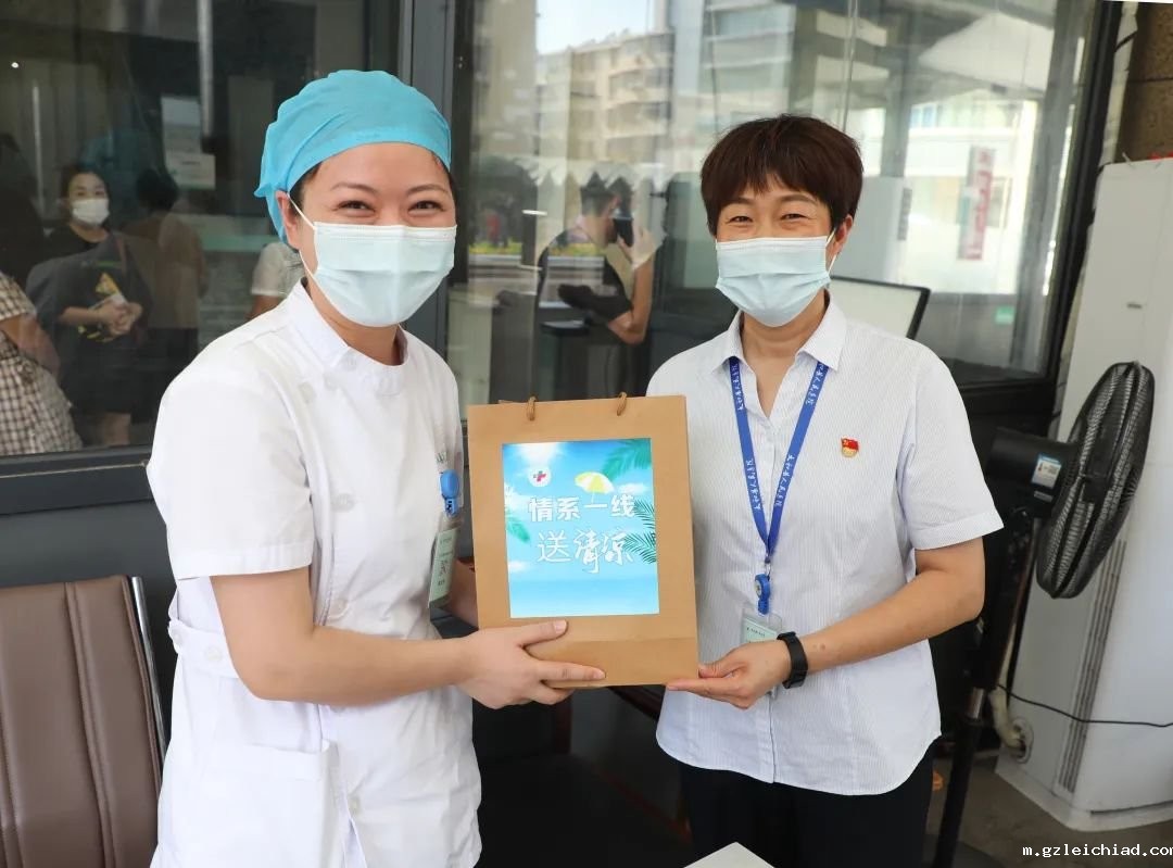 医院党委副书记徐莉带队,党群工作部、党委统战室等部门工作人员先后走到核酸便民采集点、疫情防控执勤点等区域,向高温天气下坚守岗位的一线员工送去“清凉”礼包,叮嘱职工注意防暑降温、合理安排作息。徐莉指出,医院党委将严格贯彻《新型冠状病毒肺炎疫情防控人员防暑降温工作指南》,配备必要的通风或降温设备设施,强化疫情防控人员个体防护,防范高温中暑事件发生,保障常态化疫情防控工作。