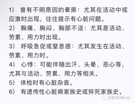 通常心源性猝死前没有任何征兆。但如果出现以下情况,需引起重视,并立即就诊。