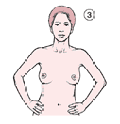 1.首先两手叉腰,在镜前仔细观察两侧乳房外形有无变化。