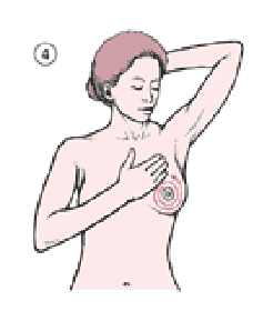 3.进行触诊,双手分别检查对侧乳房。双手可涂少许肥皂,用手掌和手指的指腹扪按乳房,而不能用手指抓捏,按照外上,外下、内下,内上、乳头乳晕区的顺序进行检查。