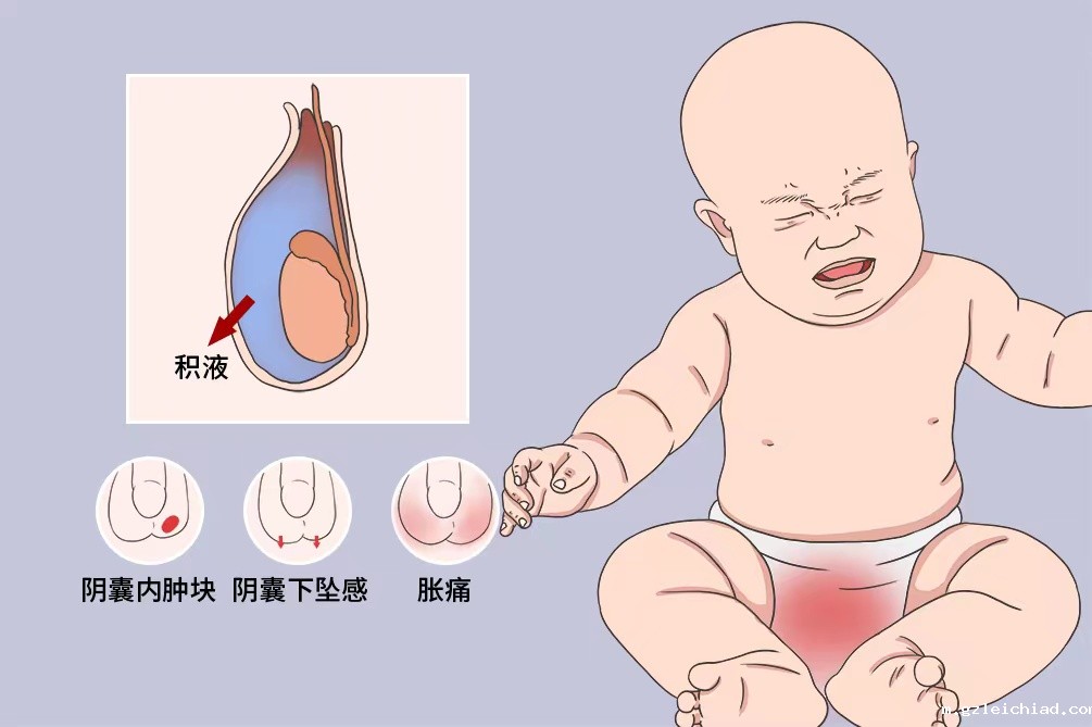 1. 多数在洗澡时发现小朋友一侧腹股沟或阴囊的囊性包块,有1/4的患儿表现为双侧包块;