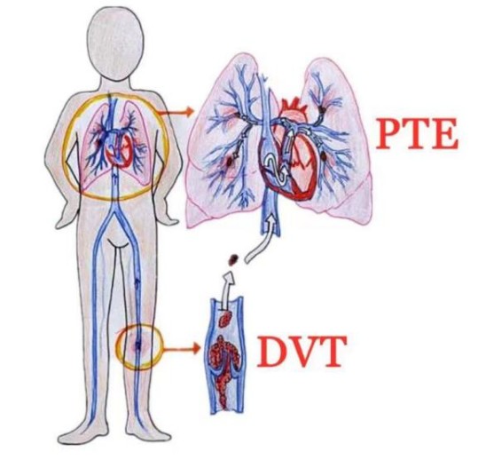 VTE是深静脉血栓形成(DVT)和肺栓塞(PE)的统称。深静脉血栓形成(DVT)是指血液在静脉内不正常凝结,使血管不完全或者完全堵塞,属于静脉回流障碍型疾病,常发生于下肢,若血栓脱落,栓子经血液循环流至肺,则可引起肺栓塞(PE),此时会有生命危险。