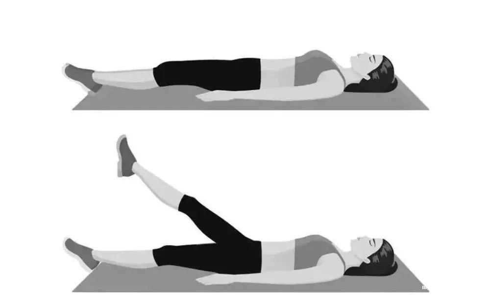 平躺在床上,把腿伸起,让大腿的肌肉收紧、绷直,将下肢抬离床面,与床面成15度夹角,或是脚后跟抬离床面15cm,维持到无法坚持为止,再慢慢地放下,次数逐渐增多至每日60次,可以分3次练习,每次练习20次。