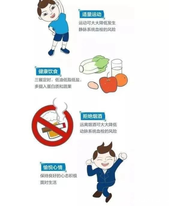 首先,应该加强认识,尤其是疾病的高危人群,时时提高警惕;其次,要多喝水,降低血液的黏稠度;另外,注意不能长期保持一个姿势,定时站起活动;禁止吸烟、喝酒,这些不良嗜好会令血液处于高凝状态。