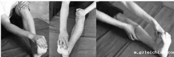 02 随后用手慢慢挤压按摩抽筋的部位,使“小腿肚子”的肌肉慢慢放松,促进血液循环的恢复。