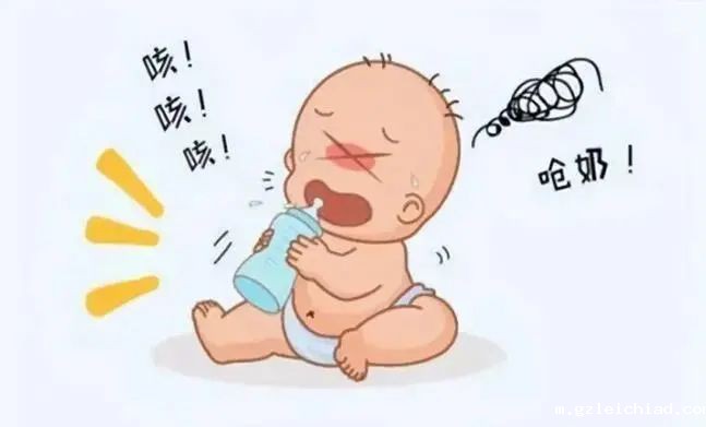 2.呛奶:其未达喂养时间而产生饥饿感时,会进行哭闹,过度哭闹会使得胃部积累气泡;或喂奶后吐出大量奶液或奶块吸入气管阻塞呼吸道而影响气体交换,导致频繁剧烈的刺激性咳嗽,严重呛奶会造成缺氧导致窒息,此时患儿表现面色、口唇青紫,呼吸断断续续,心跳仍存在,若不及时抢救可在数分钟内因窒息而死亡。