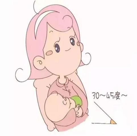 母乳喂养宝宝应斜躺在妈妈怀里(上半身成30-45度),不要躺在床上喂奶。人工喂养宝宝吃奶时更不能平躺,应取斜坡位,奶瓶底高于奶嘴,防止吸入空气。