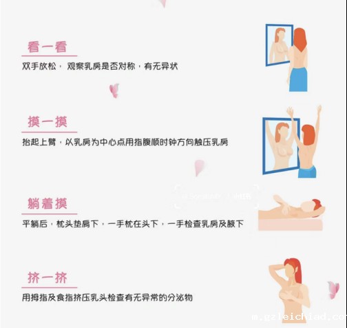 乳房自检是一种简单而有效的方法,在检查时,要留意乳房是否出现以下六种异常变化: