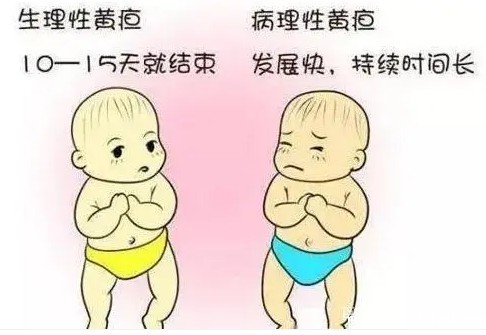 生理性黄疸:一般在新生儿出生后2-3天开始出现,出生后4-6天是最黄的时候,7-10天逐渐消退,早产儿可能会延迟2-4周,轻者可见面部和颈部出现黄疸,重者躯干四肢出现黄疸,大便色黄,尿不黄,偶尔可见轻度嗜睡,宝爸宝妈不必过分紧张。