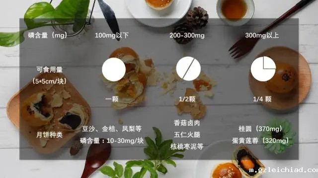 依照常见月饼的含磷量(mg),建议一日可食用量如下: