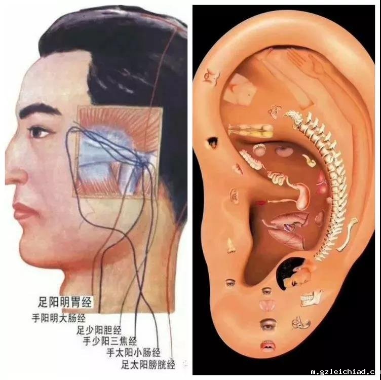 耳穴:顾名思义就是耳朵上的穴位,与人体的脏腑经络相沟通,反映机体生理功能和病理变化,是诊断疾病和治疗疾病的特定点。