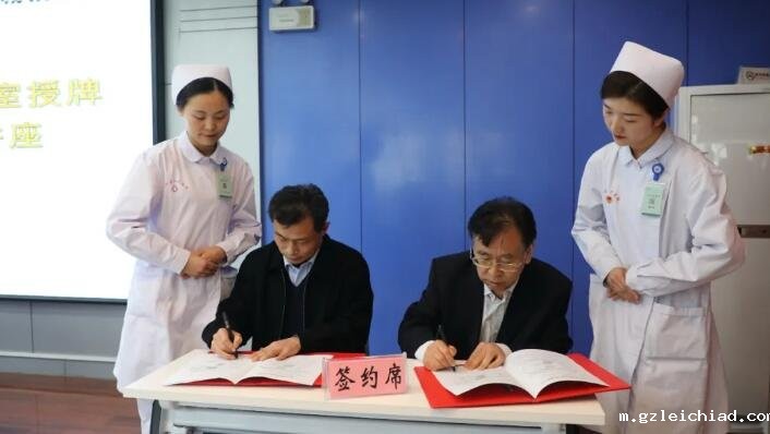 宫心明与吕长兴教授签署共建协议,为“吕长兴名医工作室”揭牌,杨惠英向吕长兴教授颁发聘书。