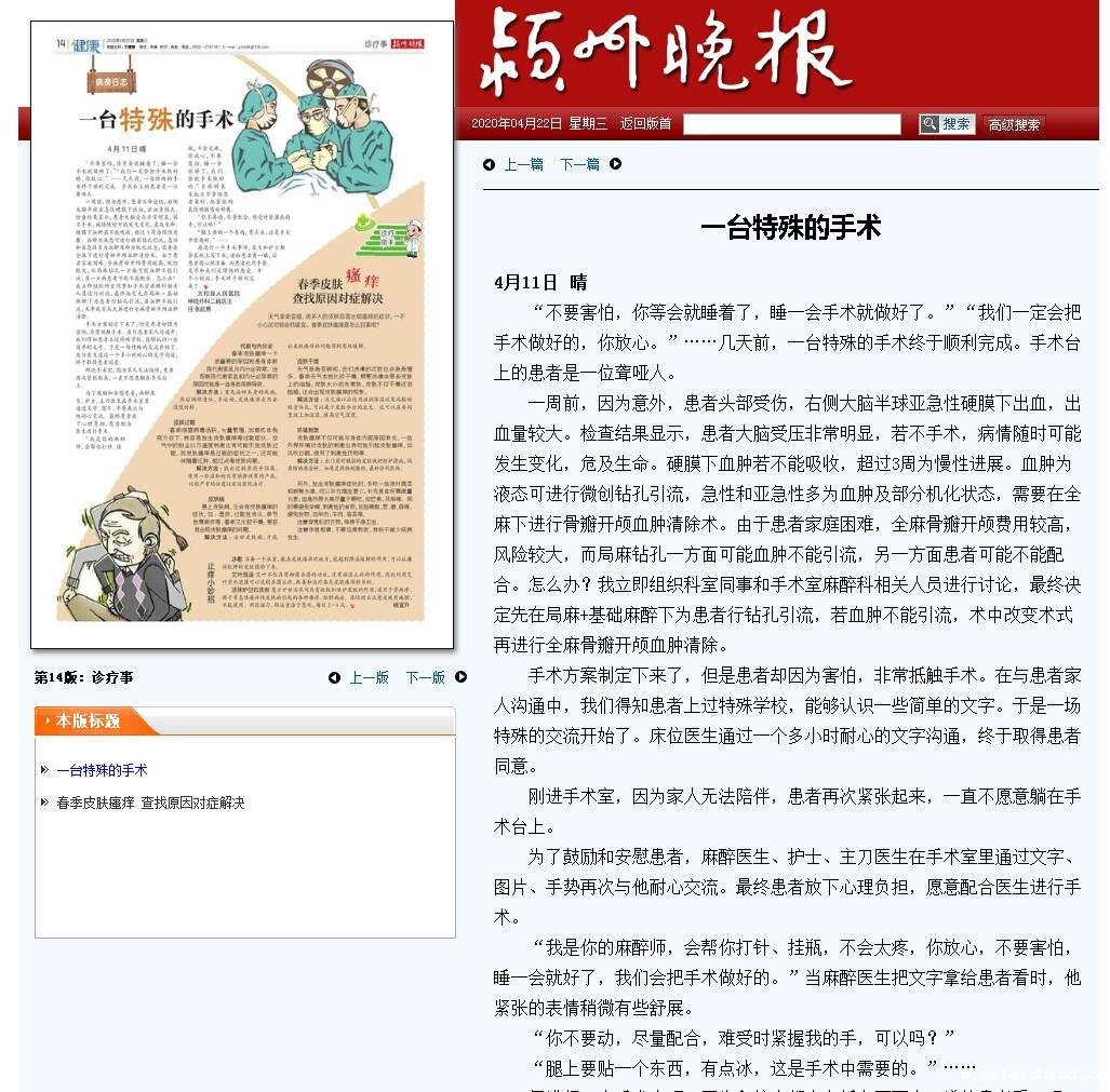 《颍州晚报》04月22日第14版诊疗事:一台特殊的手术