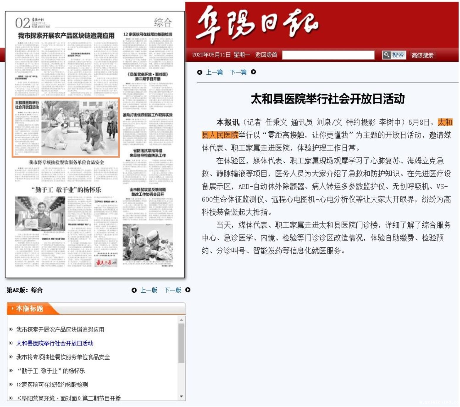 《阜阳日报》05月11日第A2版综合:太和县医院举行社会开放日活动